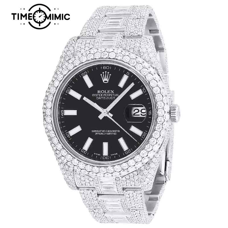 Supper Iced Out Rolex Datejust Black Replica Diamond 41mm Fake Watches Clone