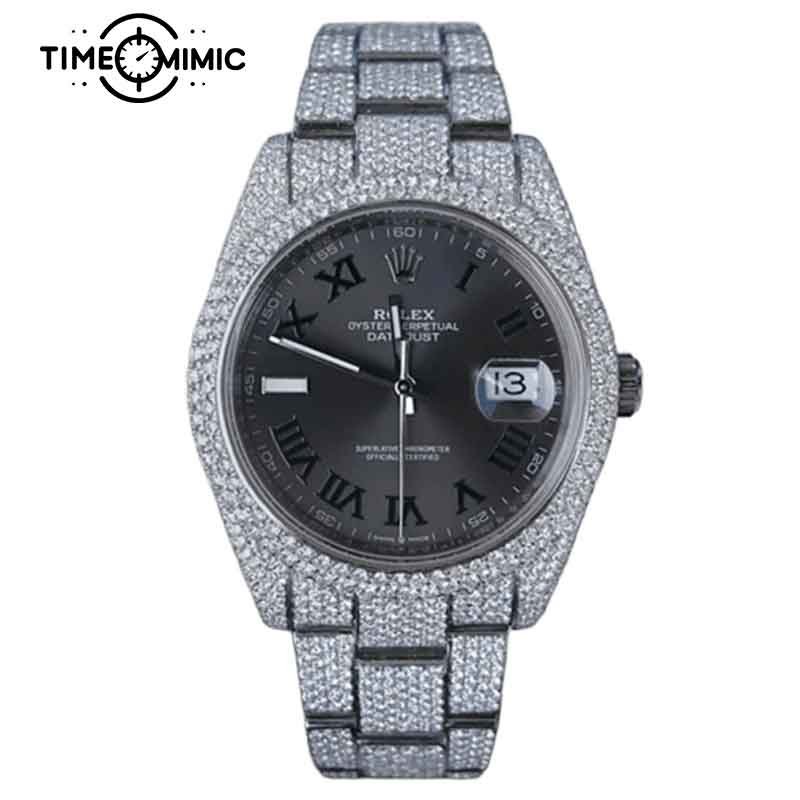 Supper Iced Out Rolex Datejust Wimbledon Replica Diamond 41mm Fake Watches clone