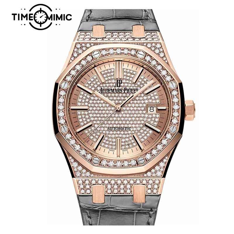 Supper Replica Audemars Piguet Royal Oak Iced Out Diamond 15402OR.ZZ.D003CR.01-41mm Rose Gold Fake Watches Clone
