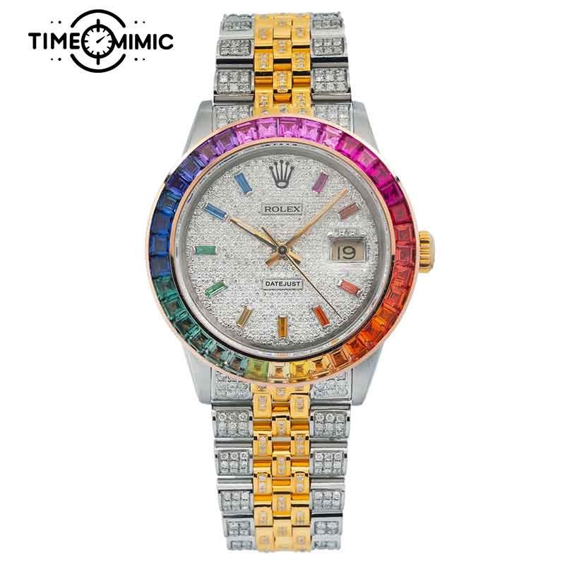 SKU Fully Iced Out Rolex Datejust Rainbow Diamond Bezel Replica Categories , , , , Tags , , , ,
