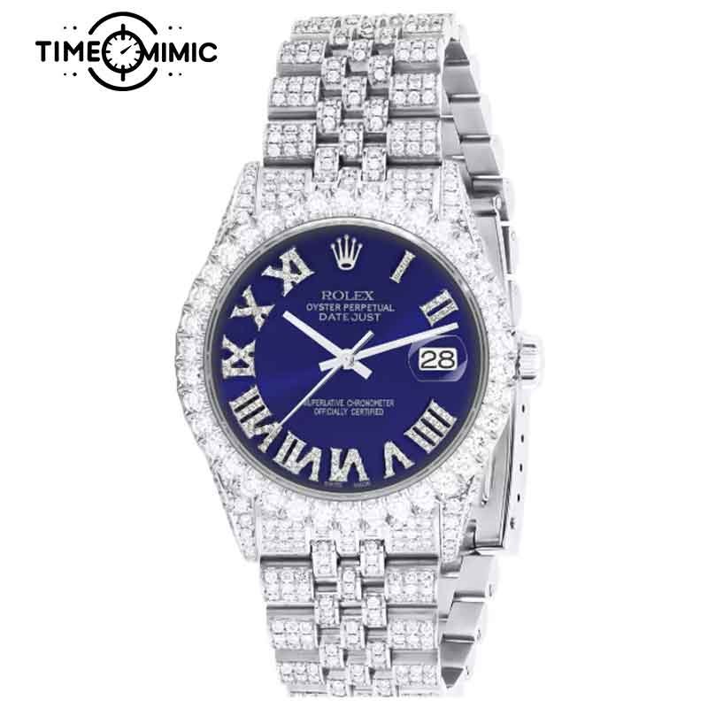 SKU Iced Out Rolex Datejust Blue Roma Number Dial Jubilee Replica Categories , , , , Tags , , , ,