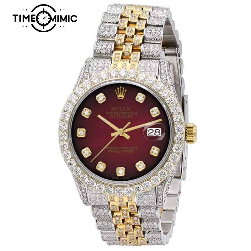 SKU Iced Out Rolex Datejust Diamond Scale Red Dial Jubilee Gold Twe-Tone Replica Categories , , , , Tags , , , ,