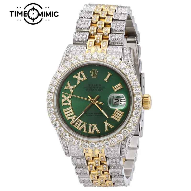 SKU Iced Out Rolex Datejust Green Roma Diamond Number Dial Gold Twe-Tone Replica Categories , , , , Tags , , , ,