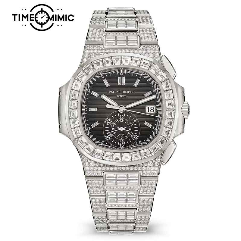 Supper Replica Patek Philippe Nautilus 5980/1400G-010 40.5mm Diamond Fully Iced Out Fake Watches Clone