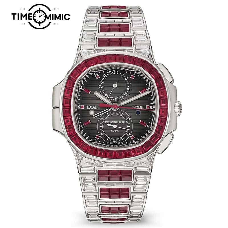 Supper Replica Patek Philippe Nautilus 5990/1422G-001 40.5mm Red Diamond Fully Iced Out Fake Watches Clone
