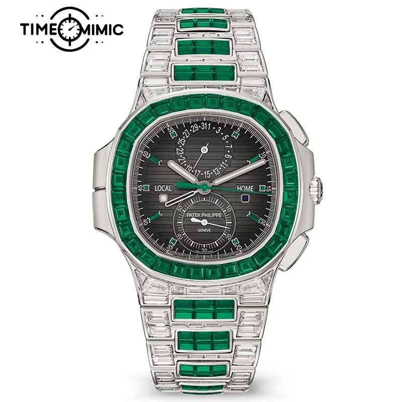 Supper Replica Patek Philippe Nautilus 5990/1423G-001 40.5mm Green Diamond Fully Iced Out Fake Watches Clone