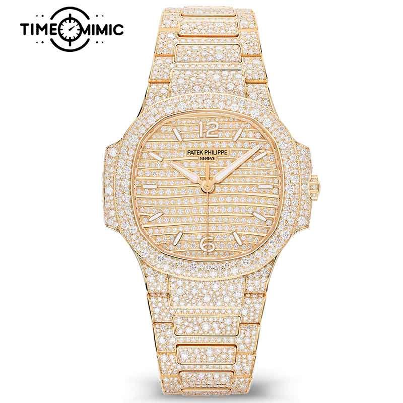 Supper Replica Patek Philippe Nautilus 7118/1450R-001 35.2mm Rose Gold Diamond Fully Iced Out Fake Lady Watches Clone